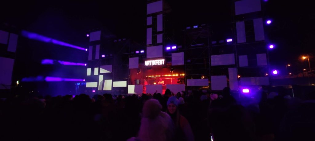 Wieso Party drin machen, wenn es bei -20°C (und tiefer) auch draussen geht? Alle tanzen in Winterausrüstung, wie im Après-Ski. Man muss, ansonsten friert man sich den A**** ab. An den Scheinwerfern hangen 20cm lange Eiszapfen.