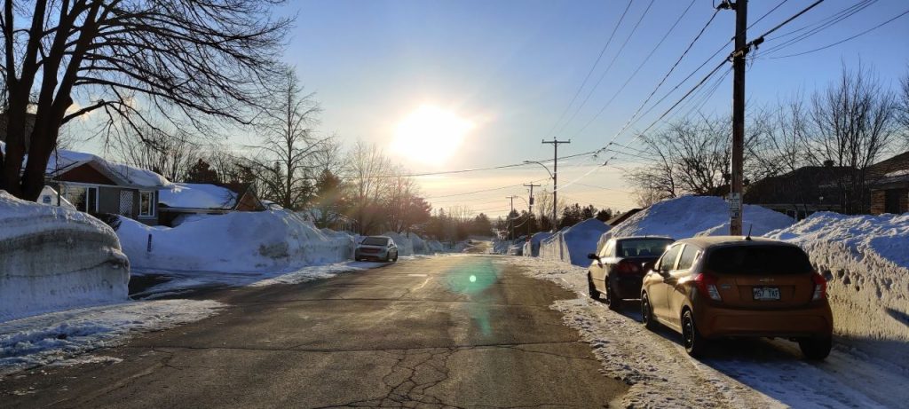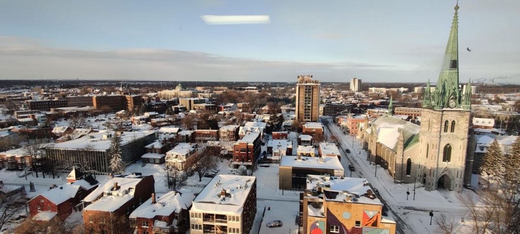 Über die Sicht aus dem Büro kann ich nicht klagen. Meine Mitarbeiter sind zwei Franzosen in etwa gleichem Alter. Geili Sieche! Sie meinen aber die Sicht auf die andere Seite sei besser. Dort sieht man den Sankt-Lorenz-Strom.