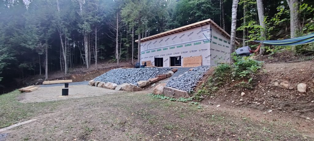 Mit dem Bau des Chalets haben sie diese Woche begonnen. Vorher haben sie in dem kleinen Hüttli in Grau übernachtet (Bild oberhalb).