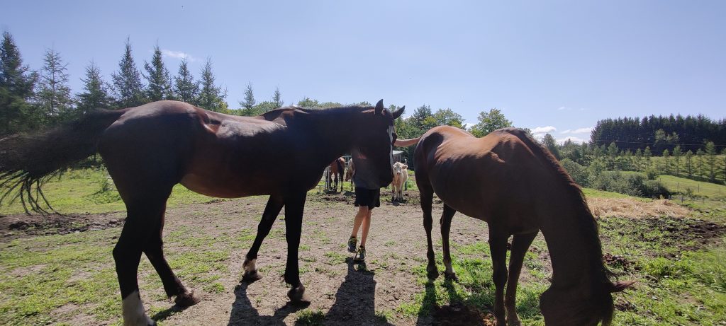 Keine Angst die Pferde und die Kuh haben einen Namen. Dies bedeutet, dass sie nicht gegessen werden. Jedoch werden die Pferde geritten und das grösste wird als Rückepferd eingesetzt.