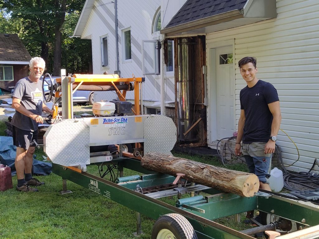 Dieses Wochenende war ich bei Heidi und Ben zum Barbecue eingeladen. Heidi ist die Cousine von meinem Onkel Martin und Ben ihr Mann. Seit vier Monaten wohnen sie an einem neuen Ort. Auf ihrem Grundstück findet man alles was das Herz begehrt (zumindest mein Herz): mehrere Duzend Hektare Wald, (Gemüse-) Garten, ein grosses Haus, eine Werkstatt, verschiedenste Gerätschaften und Fahrzeuge, Tiere und sogar eine mobile Säge. Diese hat mir Ben sehr gerne mit einem kleinen Stämmli aus seinem Wald demonstriert. Ausserdem durfte ich beim Barbecue in den Genuss von Burgern aus selbst gejagtem Fleisch kommen. Das Déjeuner am nächsten Morgen war nicht weniger gut – aber seeehr viel süsser. Das in Ei angebratene Brot und die Beeren mussten triefen vom Ahornsirup!